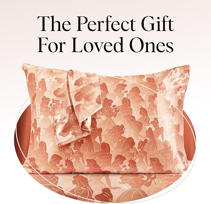 Kitsch & Disney Princess Satin Pillowcase with Zipper for Hair & Skin - Softer Than Silk Pillow Cases, Smooth Pillow Covers, Wrinkle-Free, Queen/Standard (19x26)
