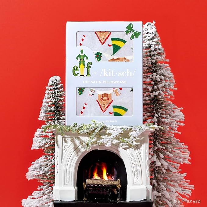 Kitsch x Elf Periwinkle Christmas Satin Pillowcase with Zipper for Hair & Skin, Softer Than Silk Pillow Cases Queen, Wrinkle-Free, Smooth and Cooling Satin Pillow Covers, Queen/Standard Size (19x26)