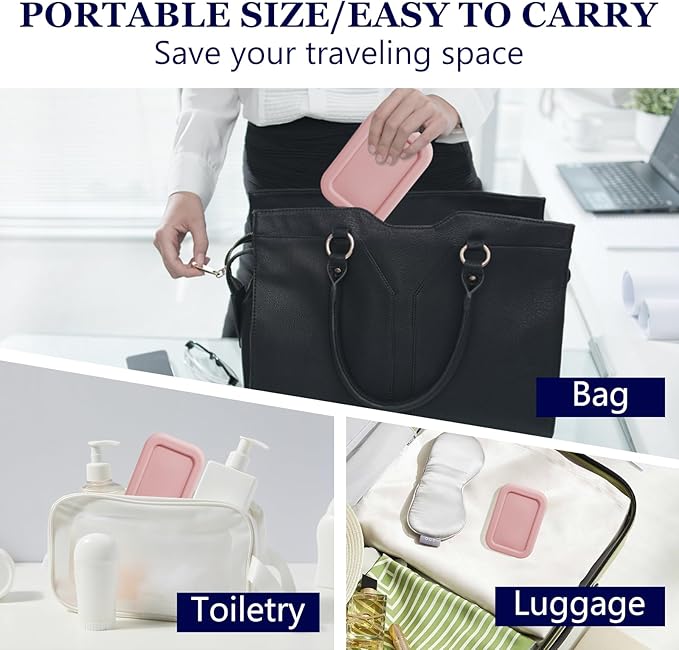 - 【DESIGN FOR TRAVELING】 The most perfect size of this silicone soap holder allows you to easily put it into your various bags, such as totes, backpack, toiletry bag, cosmetic bag and luggage. Even you put a piece of wet soap in this soap holder, it won’t make a mess of your bag. The leak-proof function ensures you have an easy journey. Besides traveling, you can also take it to camping, gym, etc.