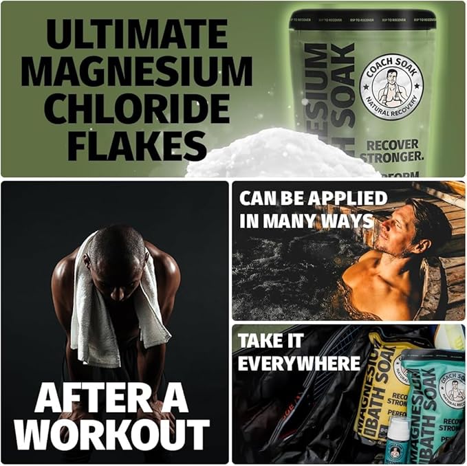 - Coach Soak's Magnesium Lotion, designed for athletes, offers quick absorption directly onto the skin. Experience the benefits of magnesium chloride with a menthol sensation. Same quality, new packaging! Your purchase includes a copy of our ebook "How Magnesium Aids Post-Workout Recovery".