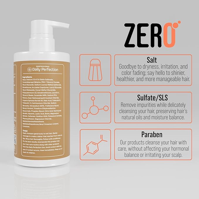 - Salt-Free, Sulfate-Free, Paraben-Free: Daily Perfection's formula is free from sulfates, parabens, and the harsh effects of salt. Our products offer a gentle cleanse that preserves your hair's natural oils.