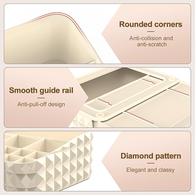 - Elegant Exterior : The elegant diamond pattern and sophisticated handle design add a touch of elegance to your vanity, making it the perfect addition to any decor style.