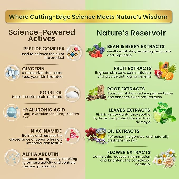 - Product Benefits : Anti-aging, skin brightening, deep hydration, firming, gentle exfoliation, pore refinement, radiance boosting, and even skin tone enhancement Anti-aging, skin brightening, deep hydration, firming, gentle exfoliation, pore refinement, radiance boosting, and even skin tone enhancement