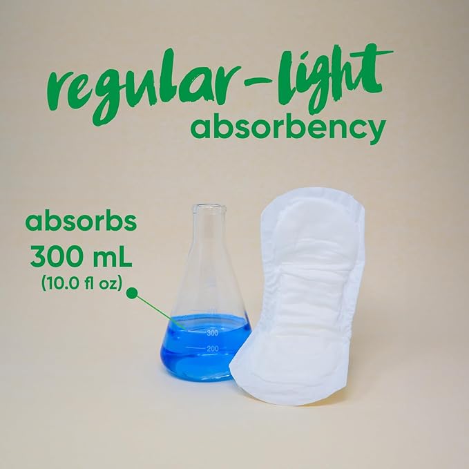 Oi | Organic Initiative Incontinence Pads for Women, Certified Organic Cotton Topsheet, Odor Control, Breathable and Hypoallergenic, Absorbs up to 10floz, Regular (10.6 inches) 44 Pads