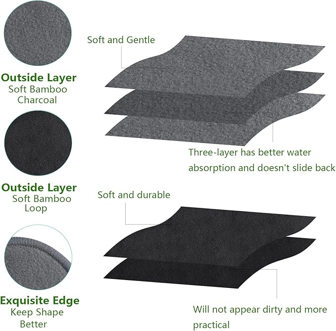 Reusable Bamboo Makeup Remover Pads | 20Pcs Natural Bamboo Reusable Cotton Rounds Makeup Removal Pad| Soft Makeup Remover Set with Bamboo Holder Laundry Bag Headband, Black and Gray