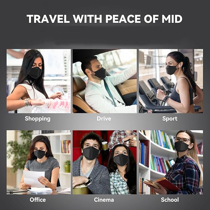 Keangs KN95 Face Masks 50 Pack, Soft and Comfortable Disposable Face Masks for Adults And Teens, Black