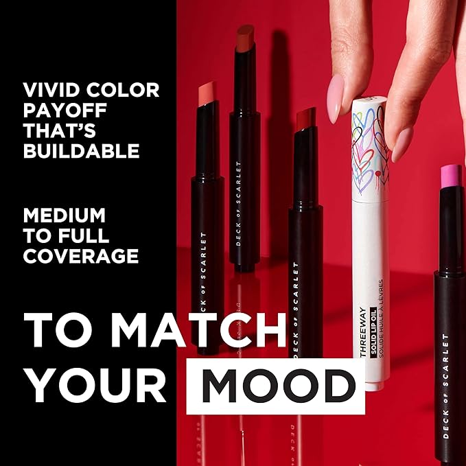 Deck of Scarlet Threeway Solid Lip Oil, Vegan Formula With Hyaluronic Acid and Hydrating Oil Blend, Glossy Finish - Espresso Riche