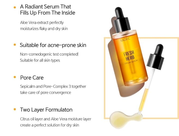 - Hydrating Anti-Aging Serum: Experience the benefits of our Fresh Herb Origin Serum (Anti-aging) 50ml. Crafted with Aloe Vera Leaves and Botanical Oil, it provides a moisture coating for a radiant finish. Patented Sepicalm, derived from lotus flower extract, offers anti-aging effects, boosts skin moisture by 1.5 times, and aids in pore refinement with the pore complex-3