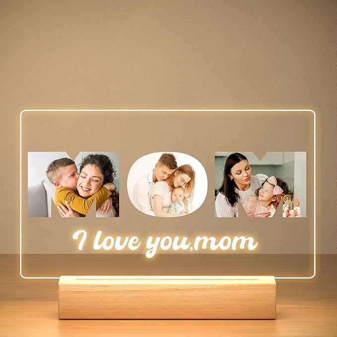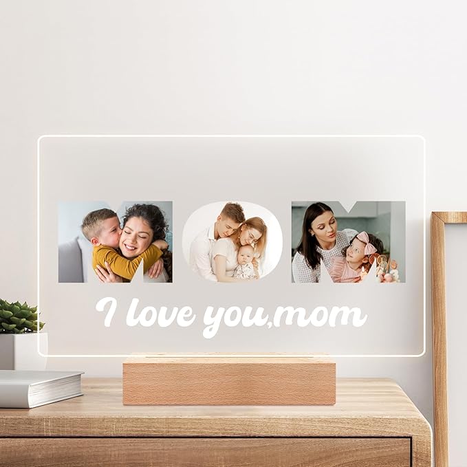 Custom Mom Picture Frame with Photo, Personalized Photo Frame with Night Light, Customized Picture Frames, Personalized Christmas Birthday Gifts for Mom from Daughter & Son