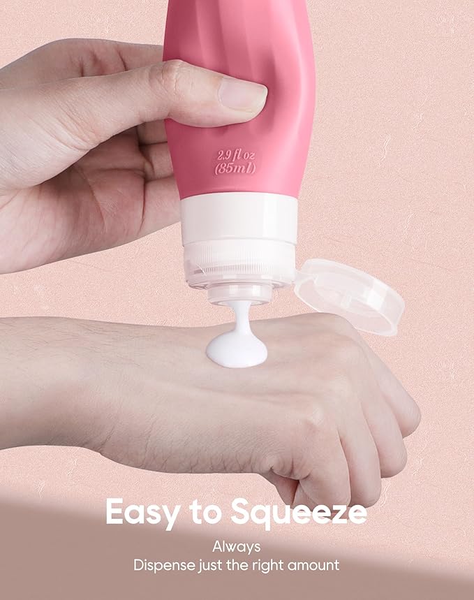 - 【SILICONE & SQUEEZABLE】Made of food grade Silicone which is BPA free and non-toxic, feel soft, flexible and comfortable instead of hard like traditional plastic travel bottles. The silicone is thick and durable but can be squeezed easily