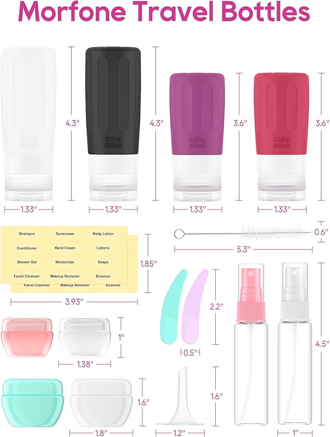 Morfone 16 Pack Travel Bottles Set for Toiletries, TSA Approved Travel Containers Leak Proof Silicone Squeezable Travel Accessories 2oz 3oz for Shampoo Conditioner Lotion Body Wash (BPA Free)