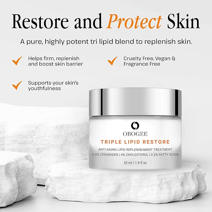 - OBOGEE Triple Lipid Restore : 25% INCREASE IN MOISTURIZATION IN 3 WEEKS - Protect your aging skin with this intensive nourishing cream that strengthens the skin barrier to lock in moisture and protect against dehydration. OBOGEE's facial skin care products are medical grade and dermatologist recommended. Compare our triple lipid barrier lipid peptide cream to a famous one that costs $150. Our ceramide cream is only $68 for the same effective pharma ceutical quality skincare.