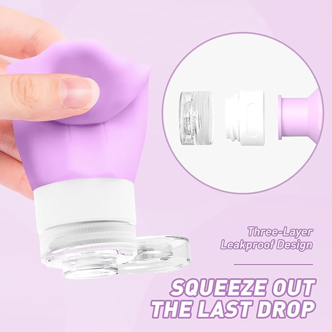 - TSA Approval: 4 pack 3 oz travel bottles for toiletries tsa approved is a TSA approved capacity that allows for unobstructed boarding. These travel size containers for toiletries are lightweight and portable, making checking in your baggage smooth and hassle-free. Additionally, our silicone travel containers for toiletries leak proof come with a zippered clear tsa approved toiletry bag with bottles to save space, easy storage, and transportation