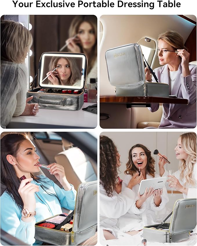- 👜【INNOVATIVE PORTABLE MAKEUP BAG】Large-capacity travel makeup bag made from PU leather - waterproof & easy to clean. Featuring a carbon fiber lining for enhanced aesthetics and durability. Equipped with 3-color LED makeup mirror, crafted with premium materials and ergonomic design. Whether for travel or business, you can effortlessly carry it without any burden.