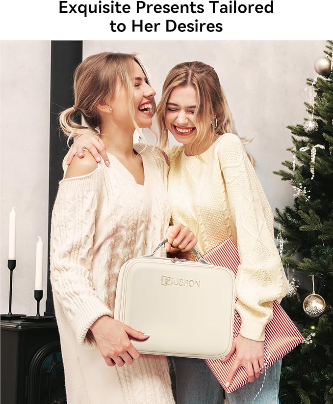 - 👍【NEW DESIGN AND UPGRADES】JUSRON makeup bag is equipped with a smooth water-drop zipper for effortless opening. The handle has been upgraded to a circular design that aligns with ergonomics, reducing pulling pressure. To cater to travel needs, we've added a luggage elastic band for convenient carrying. The included 5X magnifying mirror is undoubtedly more practical than 10X, and powder puffs set are provided for easy replacement.