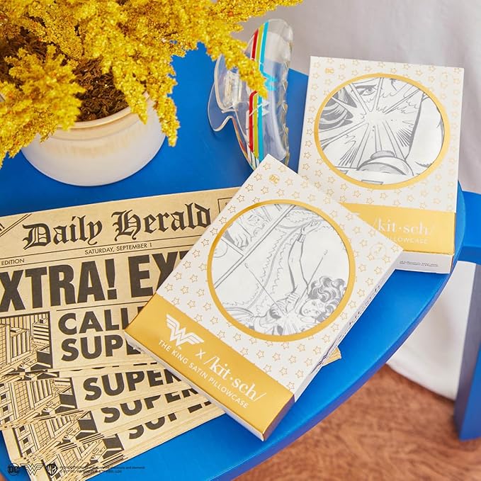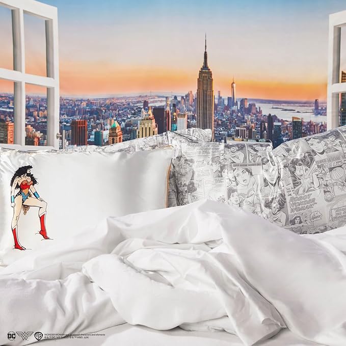 Kitsch Wonder Woman (Comic) Satin Pillowcase with Zipper Softer Than Silk, Luxury Cooling Pillowcase for Hair & Skin, Wrinkle Prevention, King Size (19X36)