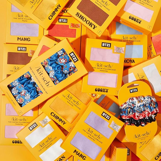 Kitsch x BT21 (Mang) Satin Pillowcase with Zipper for Hair & Skin - Softer Than Silk Pillow Cases, Smooth Cooling Pillow Cover, Wrinkle-Free, Machine Washable, Queen/Standard (19x26)