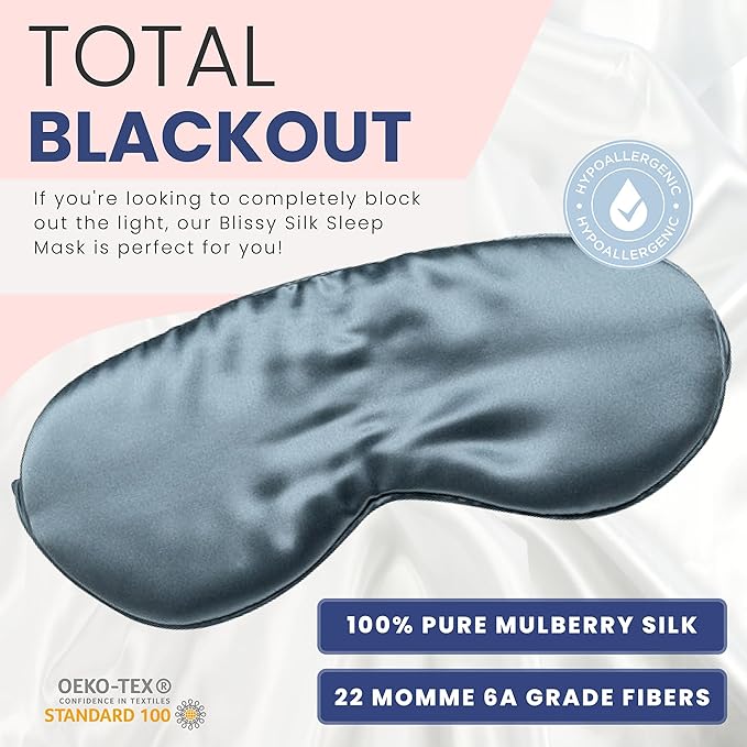 - TOTAL BLACKOUT - If you're looking to completely block out the light, our Blissy Silk Sleep Mask is perfect for you! Made with 100% pure Mulberry silk and 22 momme 6A grade fibers, this mask will keep the light out and help you get a good night's sleep.
