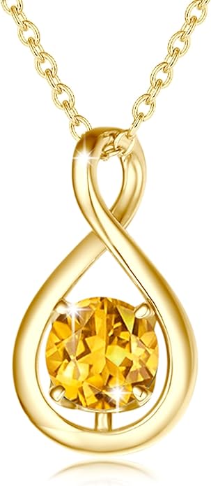 - ❤November Birthstone Jewelry❤ This infinity birthstone necklace is inlaid with stunning and shining created citrine. Citrine is the November birthstone, represents friendship and happiness. It also the stone given to celebrate the 13th wedding anniversary.
