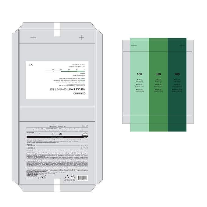 VT COSMETICS Reedle Shot Compact Set, Microneedling Serum Gift Set with Reedle Shot 100, 300, 700, Exfoliating, Anti-Aging, Travel Size Skincare for Women (0.34 oz / 10ml Each)