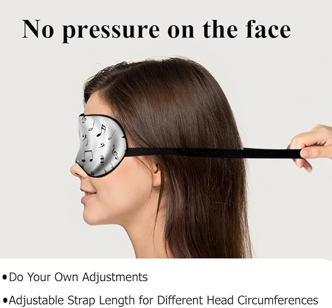 - 【Product Size】: Music Notes silk sleep mask measures 8.2" x 4.3" with modified adjustable buckle. The elastic straps is light and easy to adjust suitable for most men and women, ensuring a snug fit.