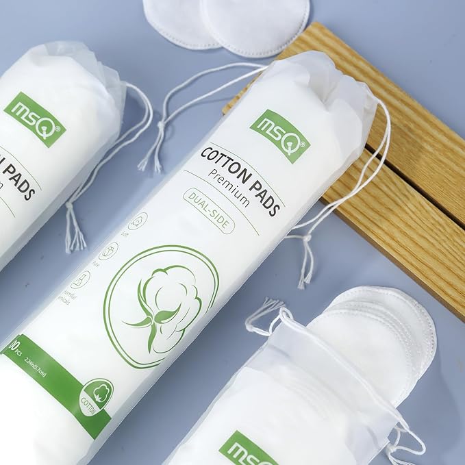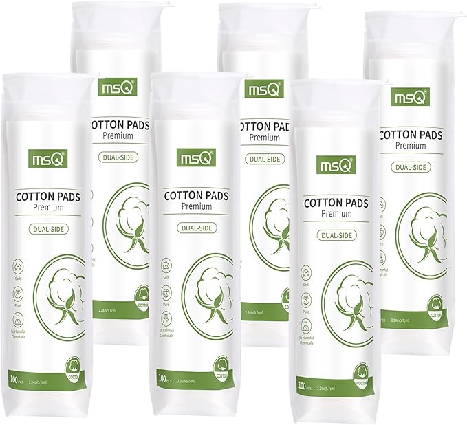 MSQ Cotton Rounds Makeup Remover Pads 600 Count Cotton Facial Cleansing Round Cotton Pads Lint-Free,Hypoallergenic (Pack of 6)