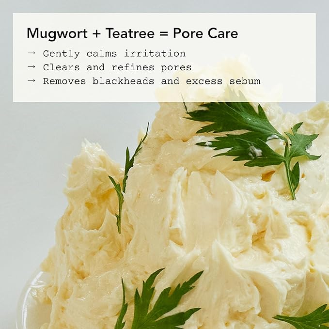 Whipped Korean Facial Cleanser and Face Wash with Mugwort & Tea Tree for Oily Skin and Pore Care, Moisturizing, Vegan, Doubles as a Face Mask, 4.5 oz