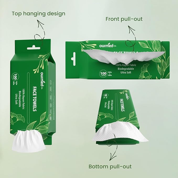Ourmed Life Face Towels - Versatile Disposable Biodegradable Cloths for Sensitive Skin | Lint-Free Facial Towel for Cleansing, Skincare, Makeup Removal & Dry Wipes, 600 Count