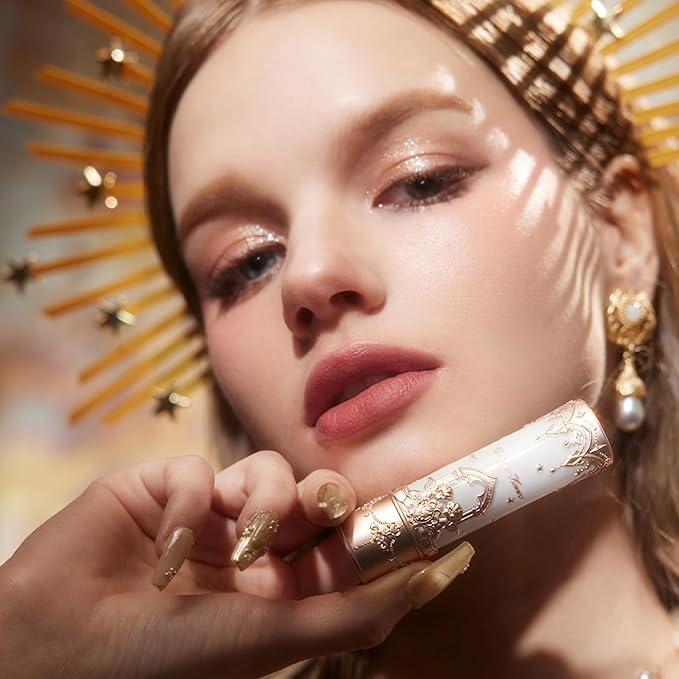 Flower Knows Little Angel Matte Lipstick,Super Soft & Ultra Silky Lip Mud Stick,Long Lasting & Moisturizing Vegan Lip Makeup for Girls&Women,Velvety Nude Peachy Finish(C03 Radiant Seraph)