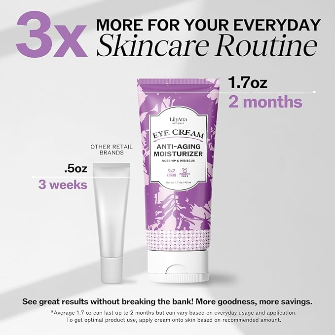 LilyAna Naturals Eye Cream for Dark Circles and Puffiness, Under Eye Cream for Wrinkles and Bags, Anti Aging - helps Improve Dryness; for Sensitive Skin - 1.7 oz - Made in USA