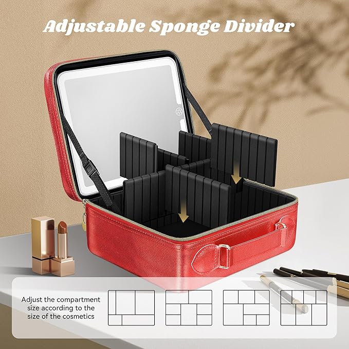 - 👜【INNOVATIVE PORTABLE MAKEUP BAG】Large-capacity travel makeup bag made from PU leather - waterproof & easy to clean. Featuring a carbon fiber lining for enhanced aesthetics and durability. Equipped with 3-color LED makeup mirror, crafted with premium materials and ergonomic design. Whether for travel or business, you can effortlessly carry it without any burden.