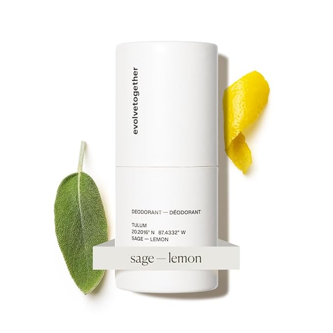 evolvetogether Aluminum Free Natural Deodorant for Women & Men | Lemon, Sage & Patchouli | Neutralizes Odors, Soothes Skin | Vegan, Cruelty-Free, Baking Soda Free | Made in USA (Tulum, 1.69 Oz)