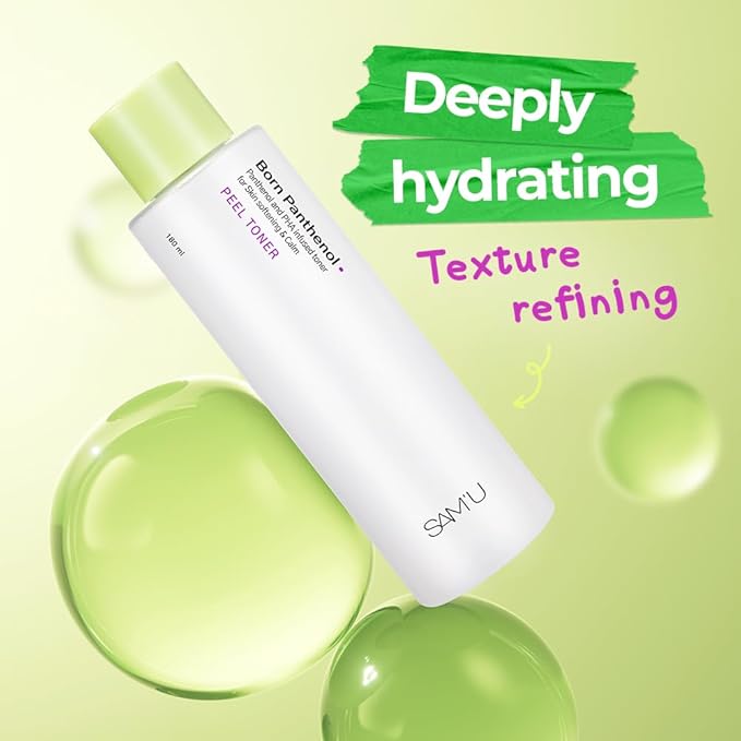 SAM'U Born Panthenol Peel Toner, Instant Hydration with 7 Hyaluronic Acids & Ceramide, Gentle Exfoliating PHA Toner for Women – Korean Skincare for All Skin Types (180ml / 6.08 fl oz)