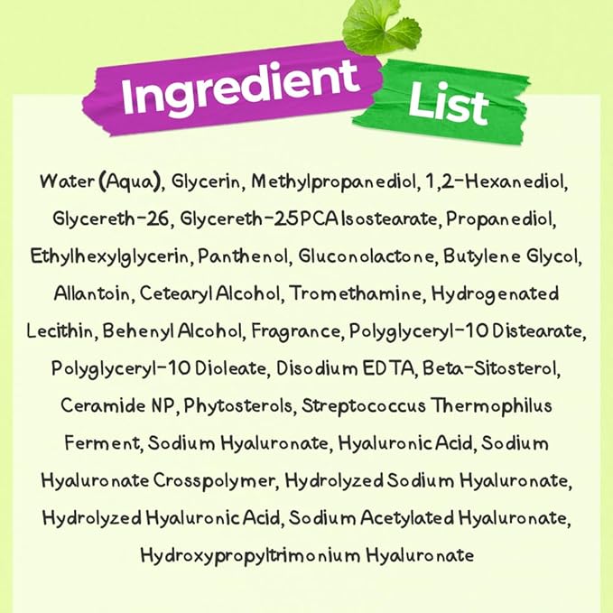 - 7 Types of Hyaluronic Acid + Ceramide: Provides multi-layered moisture and long-lasting skin comfort.
