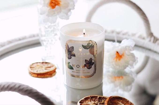 - HOME is inspired by the idea that it’s a feeling, not just a place, the Home candle by Harlem Candle Co. captures the warmth, love, and freedom of finding where you truly belong. Sparkling notes of bergamot, mandarin, and neroli blend with a graceful floral heart of violet, lilac, and jasmine, while green tea leaves add a fresh twist. Anchored by sandalwood, golden amber, and tonka bean, this elegant fragrance evokes comfort, serenity, and the soulful energy of Harlem.