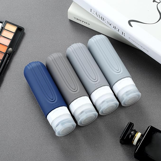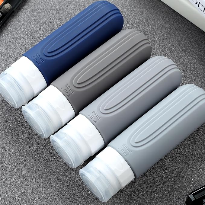 Travel Bottles for Toiletries, Tsa Approved 3oz Travel Size Containers BPA Free Leak Proof Refillable Liquid Silicone Squeezable Travel Accessories for Shampoo Conditioner Lotion (4 Pack)…