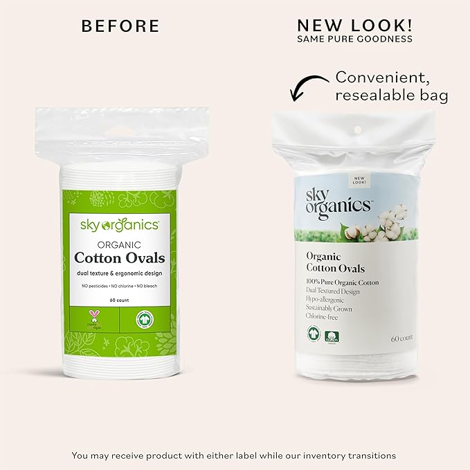 Sky Organics Organic Large Oval Cotton Pads, 100% Pure Organic Cotton, GOTS Certified Cotton, 240 Count, Dual Textured Design, for Makeup Removal, Cleansing, Toner Application