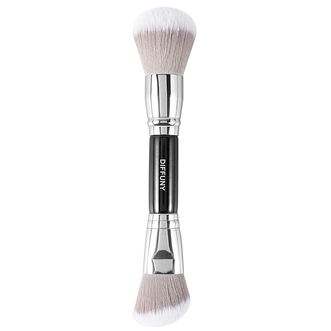 - POWDER BRUSH + CONTOUR BRUSH: This double ended makeup brush is a two-in-one brush designed for use with your favorite contour, bronzer and powder face products