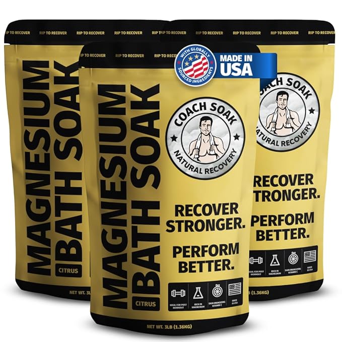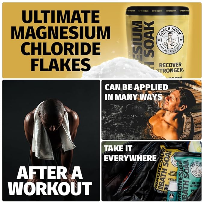 Coach Soak Recovery Bath Soak - Alternative to Epsom Salt Bath Soak - Fast-Absorbing Pure Magnesium Flakes with 21 Minerals, Bath Salts & Essential Oils - 9 lb (Pack of 3)