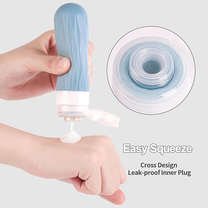 - Travel Size Toiletries: Refillable travel bottle is perfect for shampoo, conditioner, body wash, lotion and and other skincare products. BPA free food grade silicone, making it safe for other liquids like sauce, salad.