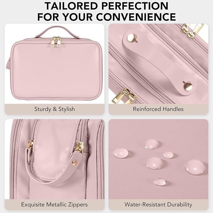 Travel Makeup Bag Women's Large Capacity Cosmetic Portable Organizer Large Opening Waterproof Storage Toiletry Bags Vertical Free-Standing Brush Holder for Easy Access Pink