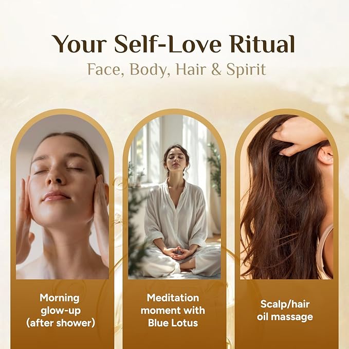 - Ancient Egyptian Wisdom: Inspired by the sacred ingredients revered by ancient Egyptians, this remarkable blend harnesses the power of Moringa oil, Blue Lotus Flower, and Ormus Gold, elevating your daily rituals to new heights of wellness and rejuvenation.
