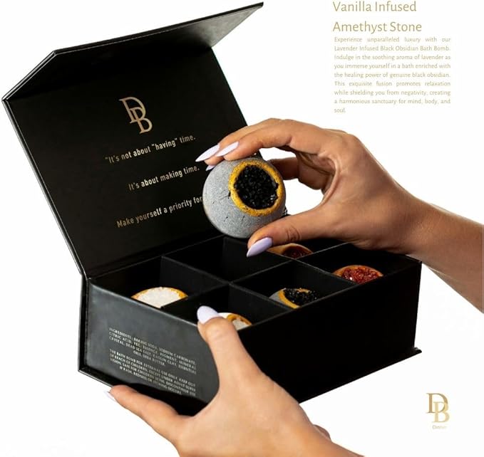 - ๐ค PERFECT GIFT FOR ANY OCCASION โ Whether you're shopping for gifts for women, men, kids, or even a relaxing treat for yourself, the DinBer bath bomb gift set is an unforgettable surprise for your body. Ideal for birthdays, holidays, Motherโs Day, or just because, this elegantly wrapped set is ready to delight anyone who deserves a moment of calm and luxury. Wrapped in bubble pack and little box.
