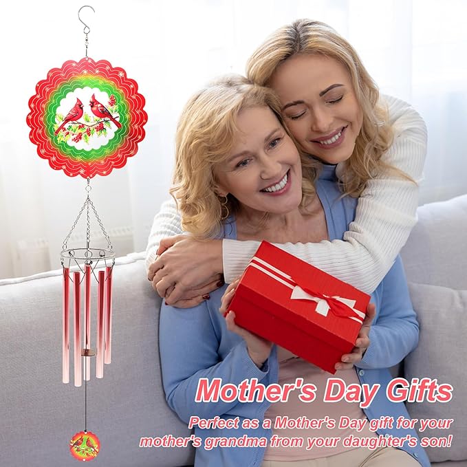 Wind Chimes with Cardinal Wind Spinner, Mom Gifts for Christmas Grandma Mom Women Birthday Retirement Teacher, 31" Windchimes Outdoor Decor Hanging Mobile for Garden Porch Patio Backyard