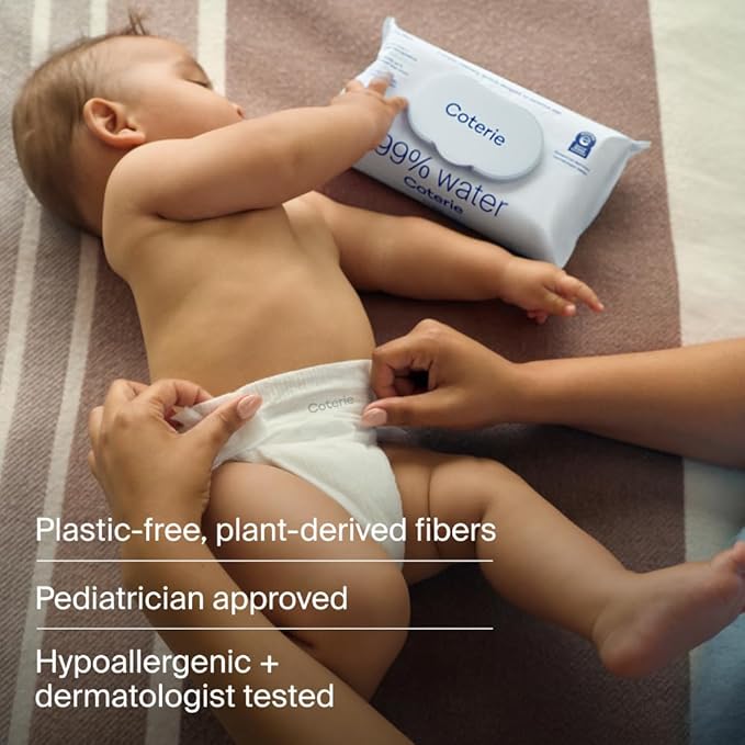 - THE BABY WIPES: Coterie unscented baby wipes are made with 99% water and 100% plant-based fibers. Each wipe is up to 30% larger than other brands, ultra-soft, and gentle on sensitive skin.
