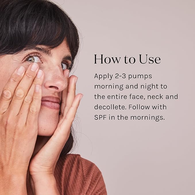 - HOW TO USE: Apply 2-3 pumps morning and night to entire face, neck, and decollete. Follow with sunscreen in the mornings.