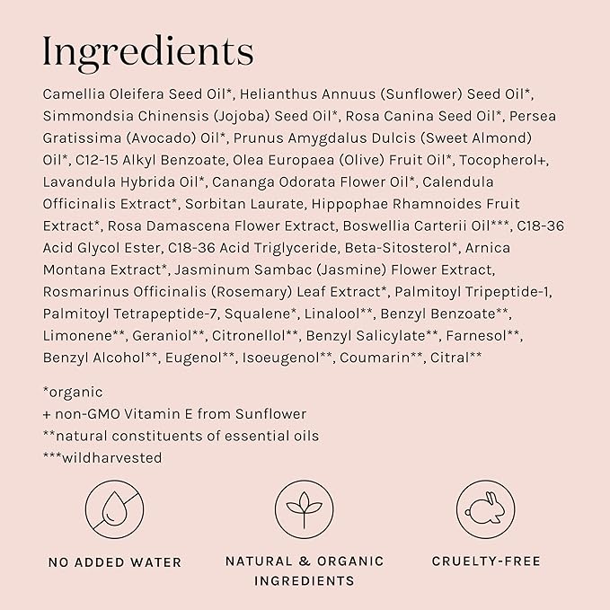 - Peptide Serum: A potent blend of luxurious plant oils and advanced peptide technology to help firm, lift and plump the skin.