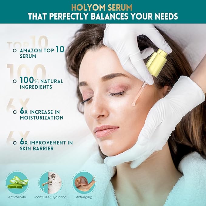 - Comprehensive Skin Solution: HOLYOM facial serum effectively addresses multiple skin concerns such as dark circles, fine lines, wrinkles, and uneven skin tone. It deeply hydrates and revitalizes the skin, promoting a youthful and radiant complexion by targeting 10 visible signs of aging, including firmness, elasticity, and pore size.