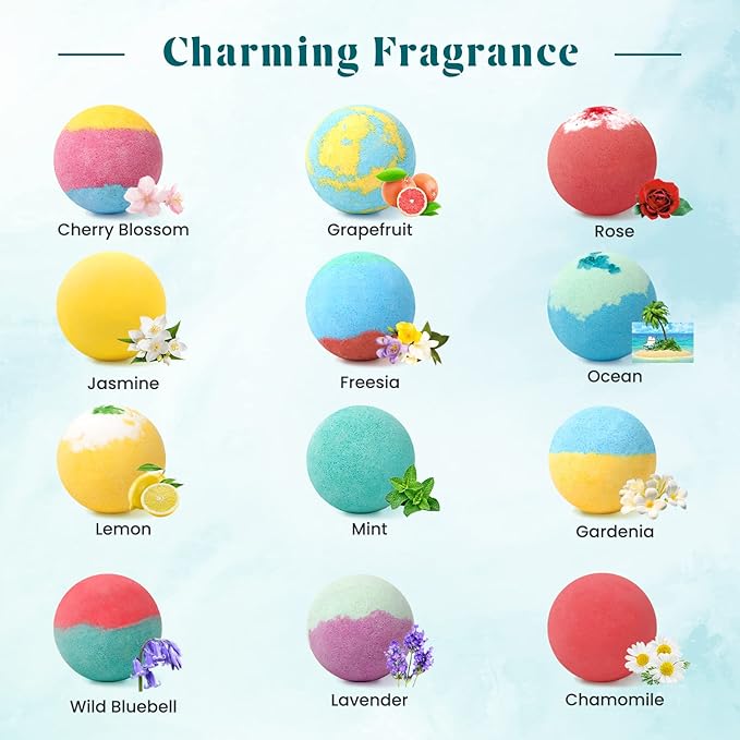 - [12 Fragrances] Rose, jasmine, cherry blossom, lavender, mint, chamomile, etc. We have selected the most popular 12 fragrances to provide a varied and luxurious experience. Tired out after a long business trip? Use Zenbombs