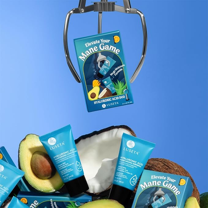 Luseta Hyaluronic Acid Moisturizing Shampoo & Conditioner Set for Dry and Damaged Hair, Sulfate Free Shampoo and Conditioner for Women Infused with Argan Oil and Shea Butter Paraben-Free 2 x 1.01oz